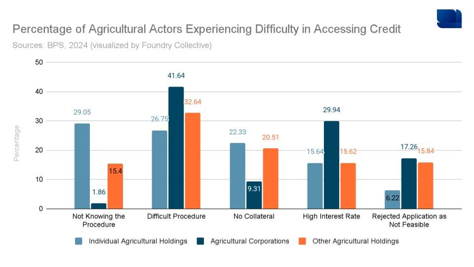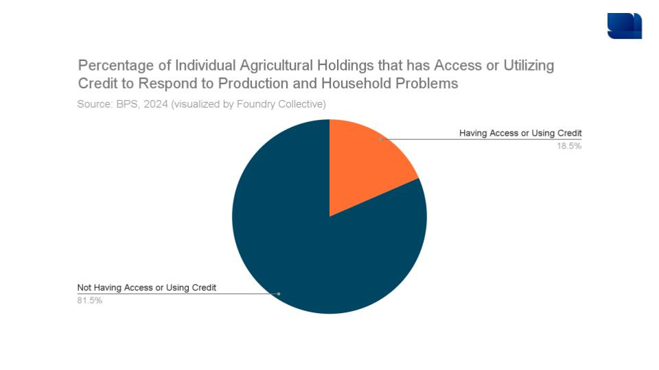 Data from Indonesia’s Central Bureau of Statistics (BPS) reveals a significant credit gap in the agricultural sector: a mere 18.5% of individual farmers have access to or use credit. The vast majority, 81.5%, are left financially excluded, unable to secure formal loans to address production challenges or household needs. This gap represents a major hurdle, but also a clear opportunity for financial innovation to drive change.